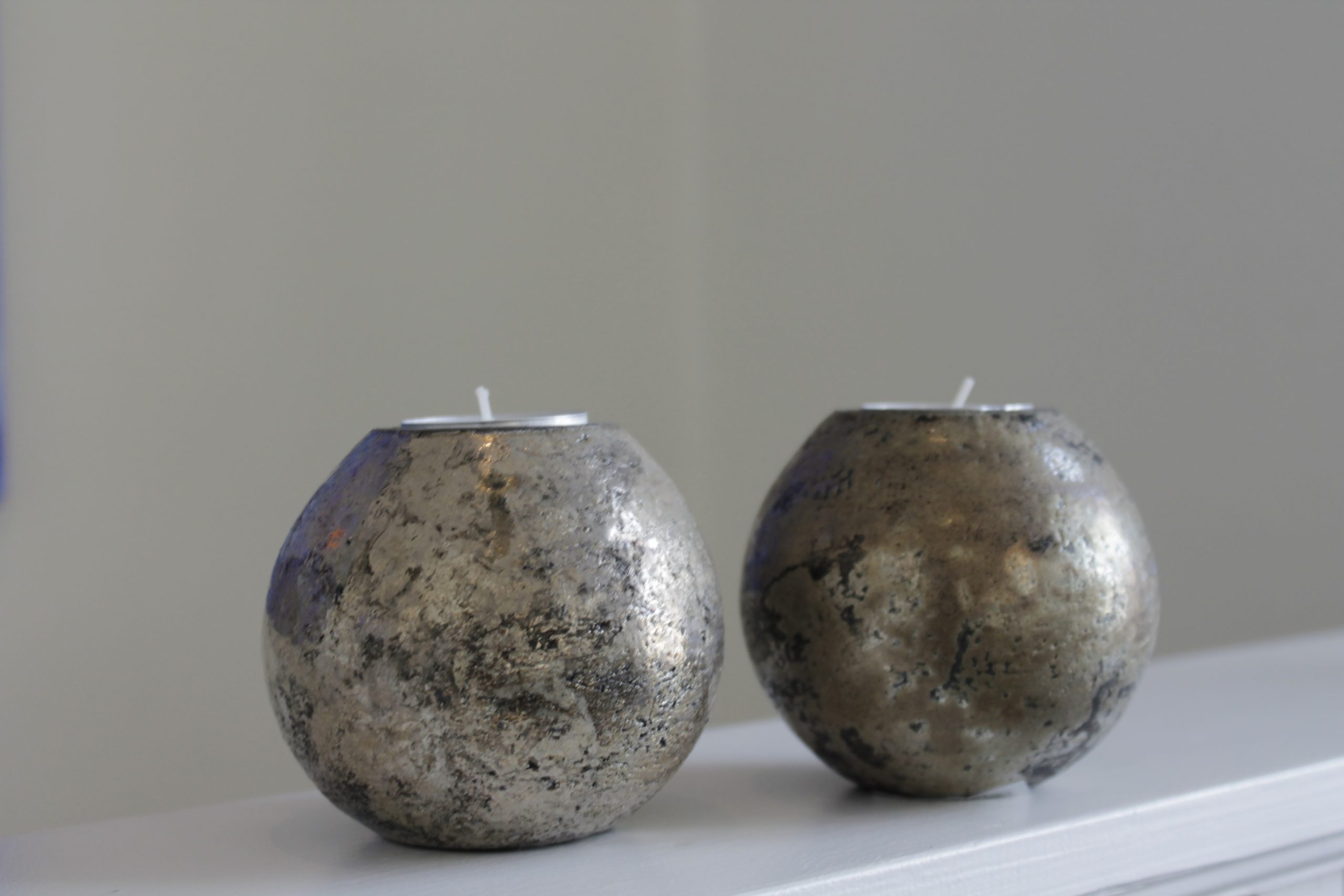 Ljuslykta i Rakubränt stengods gjord av Anna Eilert.