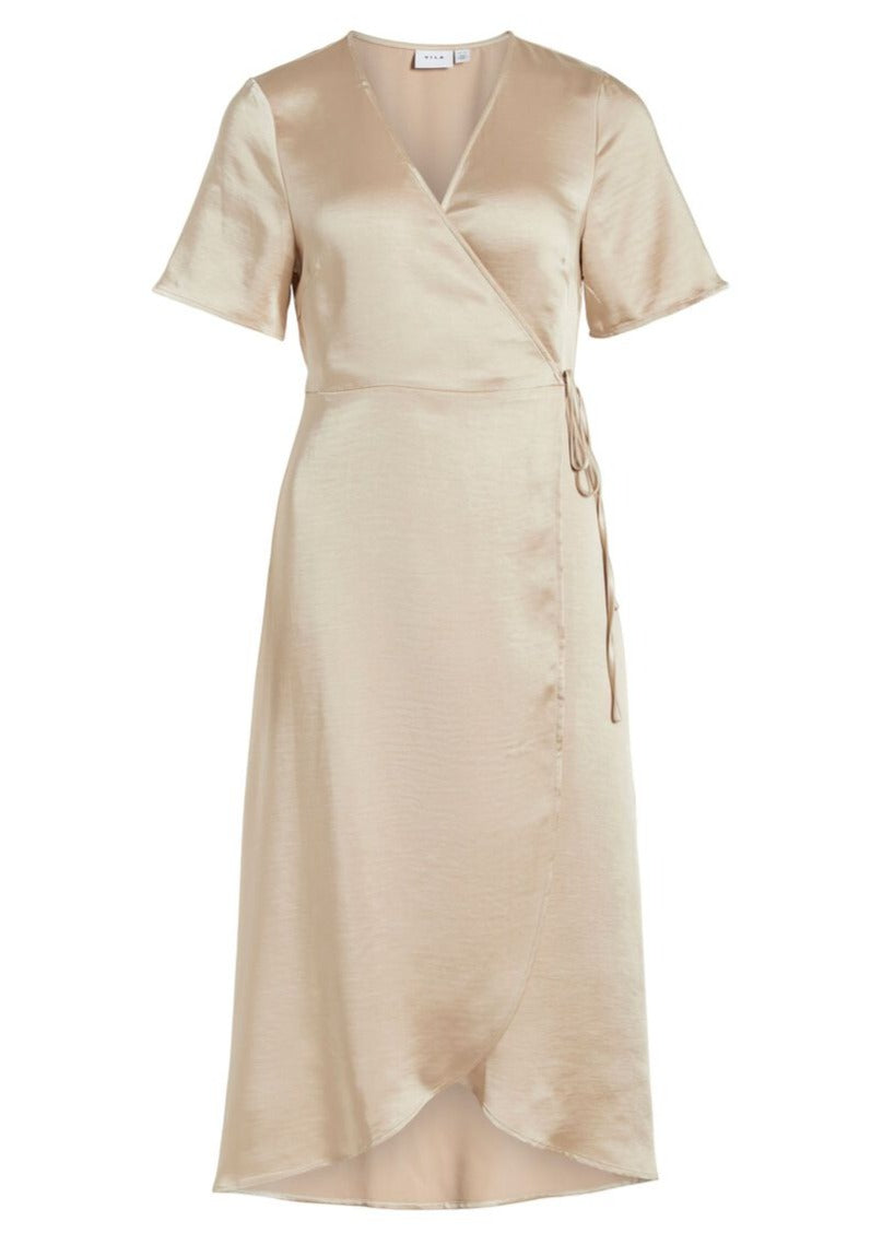 Kortärmad omlottklänning från VILA Midilängd Sidenlook Normal passform Längd: 110 cm i storlek 38 Ärmlängd: 21 cm i storlek 38 Mod...