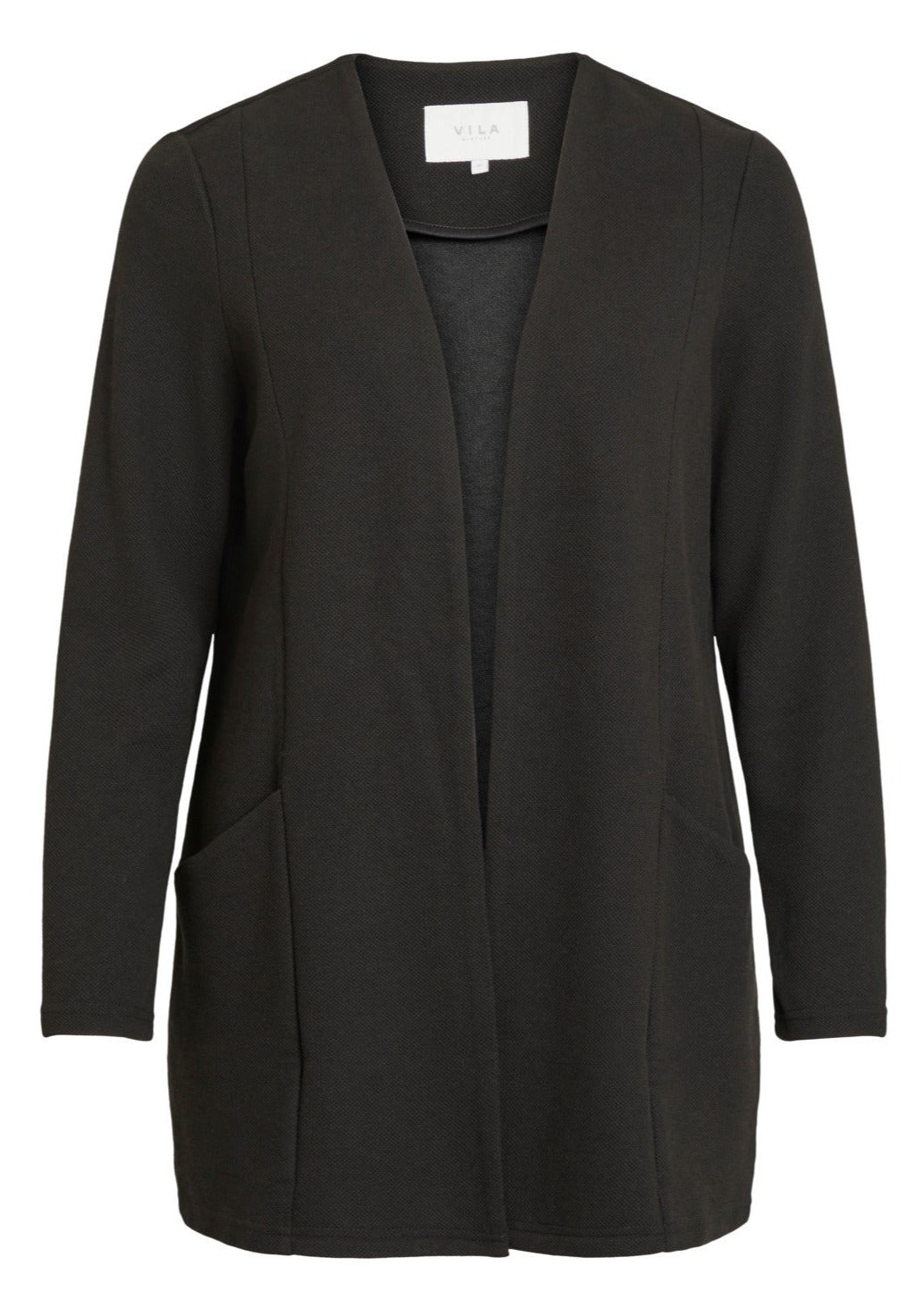 Kofta i öppen modell i trikå med fickor i sidorna