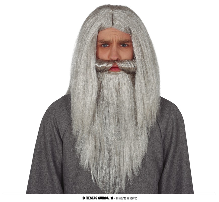 GRÅ TROLLKARL PERUK MED SKÄGG