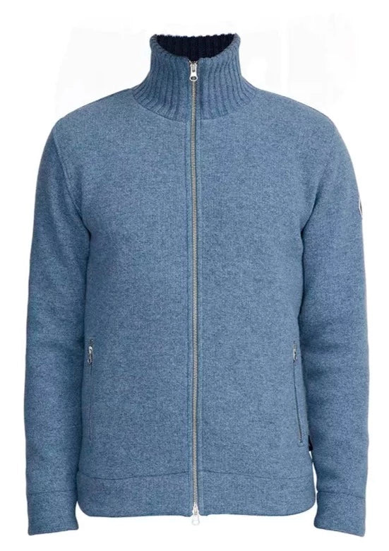 Vindfodrad, slätstickad tröja / zipjacka i ullblandning