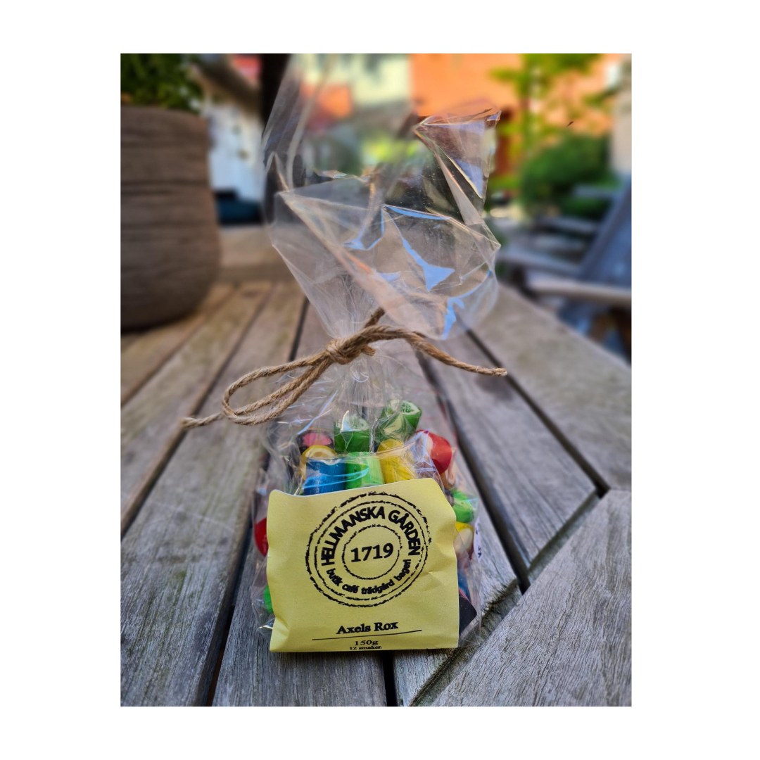 Socker, glykossirap, surhetsregl. medel: äppelsyra, aromer,salmiak, färgämne: E100,E120,E133,E150c,E160a.
