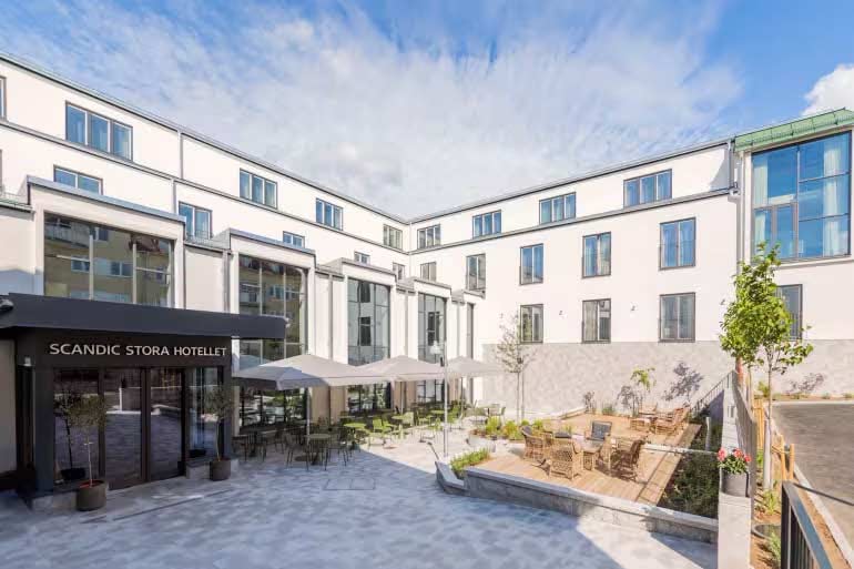Hotellet har anor från 1880-talet men har under 2019 genomgått en stor om- och tillbyggnad: 45 nya familjerum, en tvåvåningssvit på 50 kvm, ny mötes- och eventlokal samt ny entré med trädgård och uteservering.