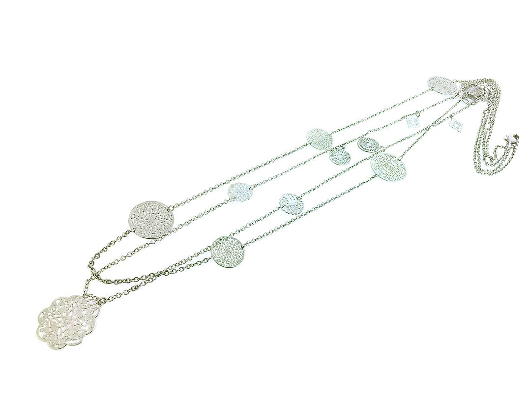 Ett snyggt långt dubbelradigt halsband med små mönstrade mynt