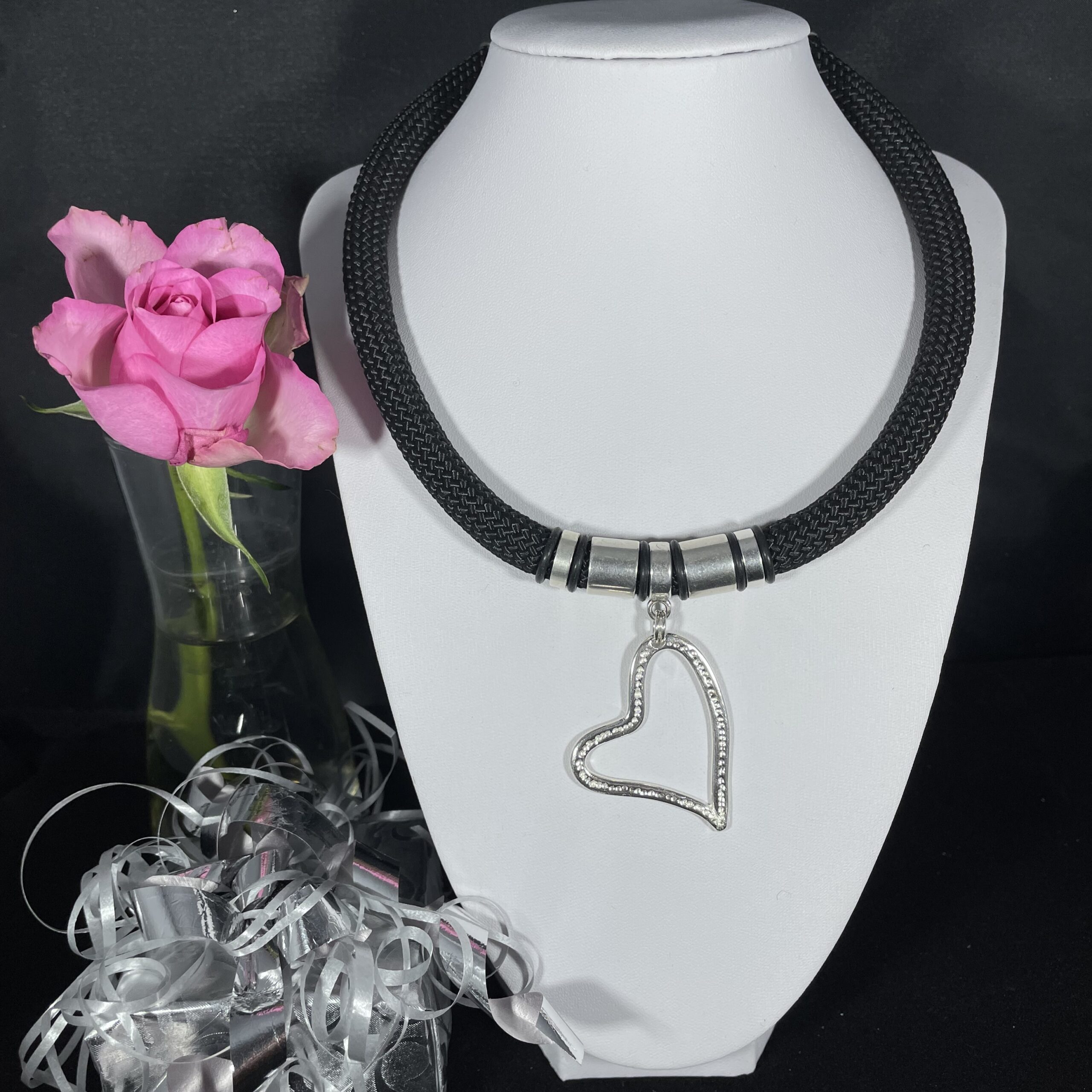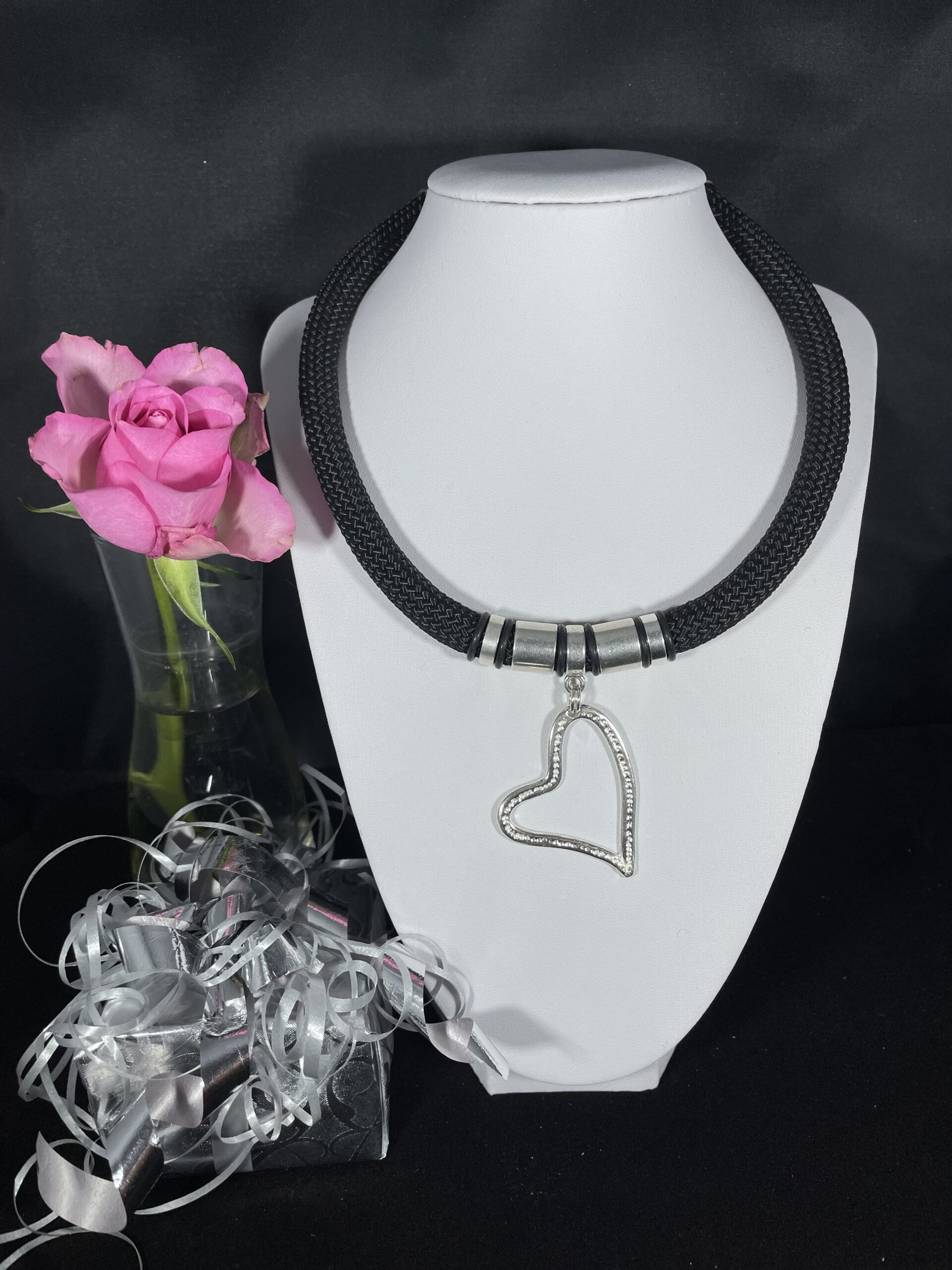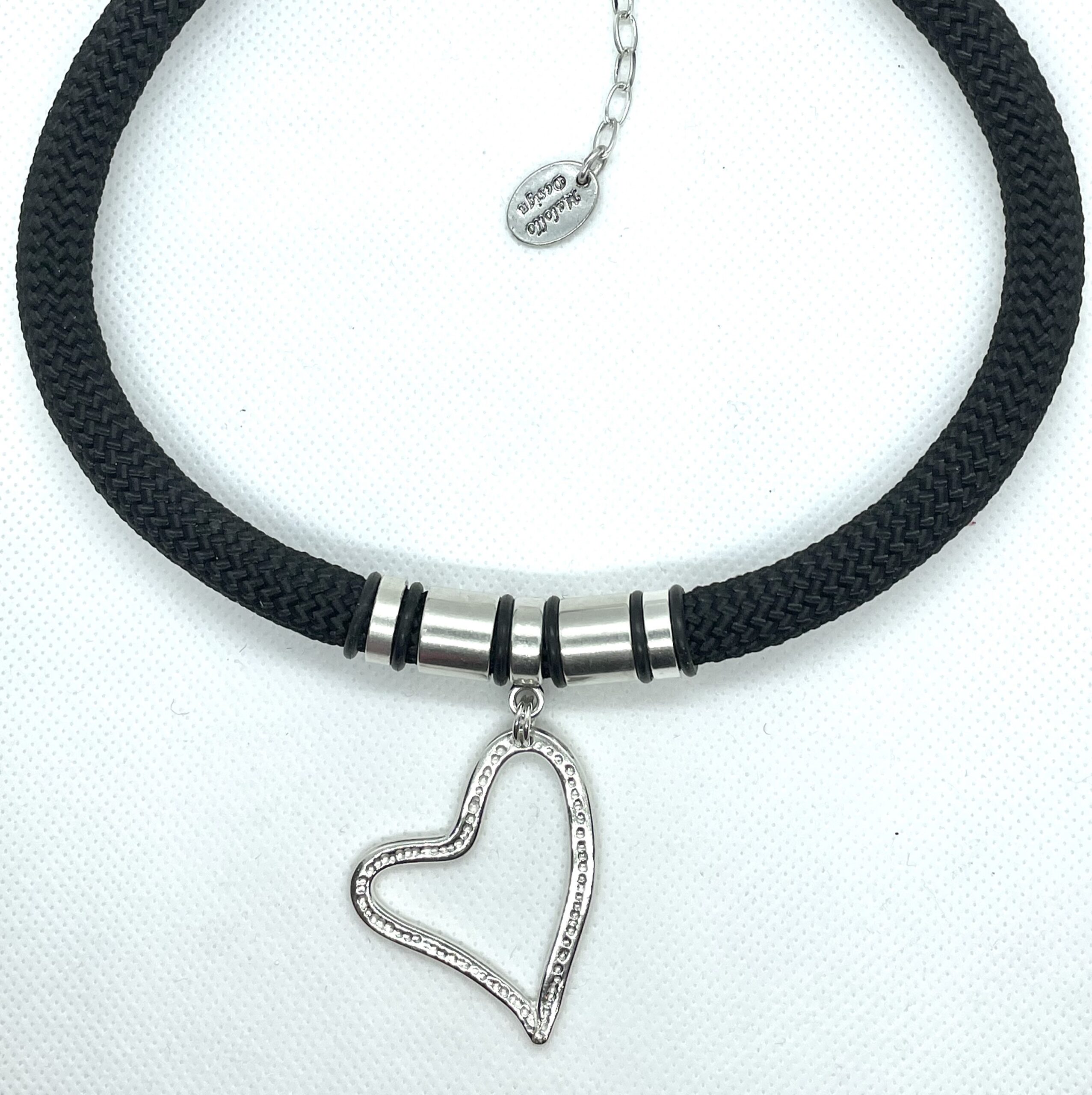Större halsband med vackert stort silverhjärta