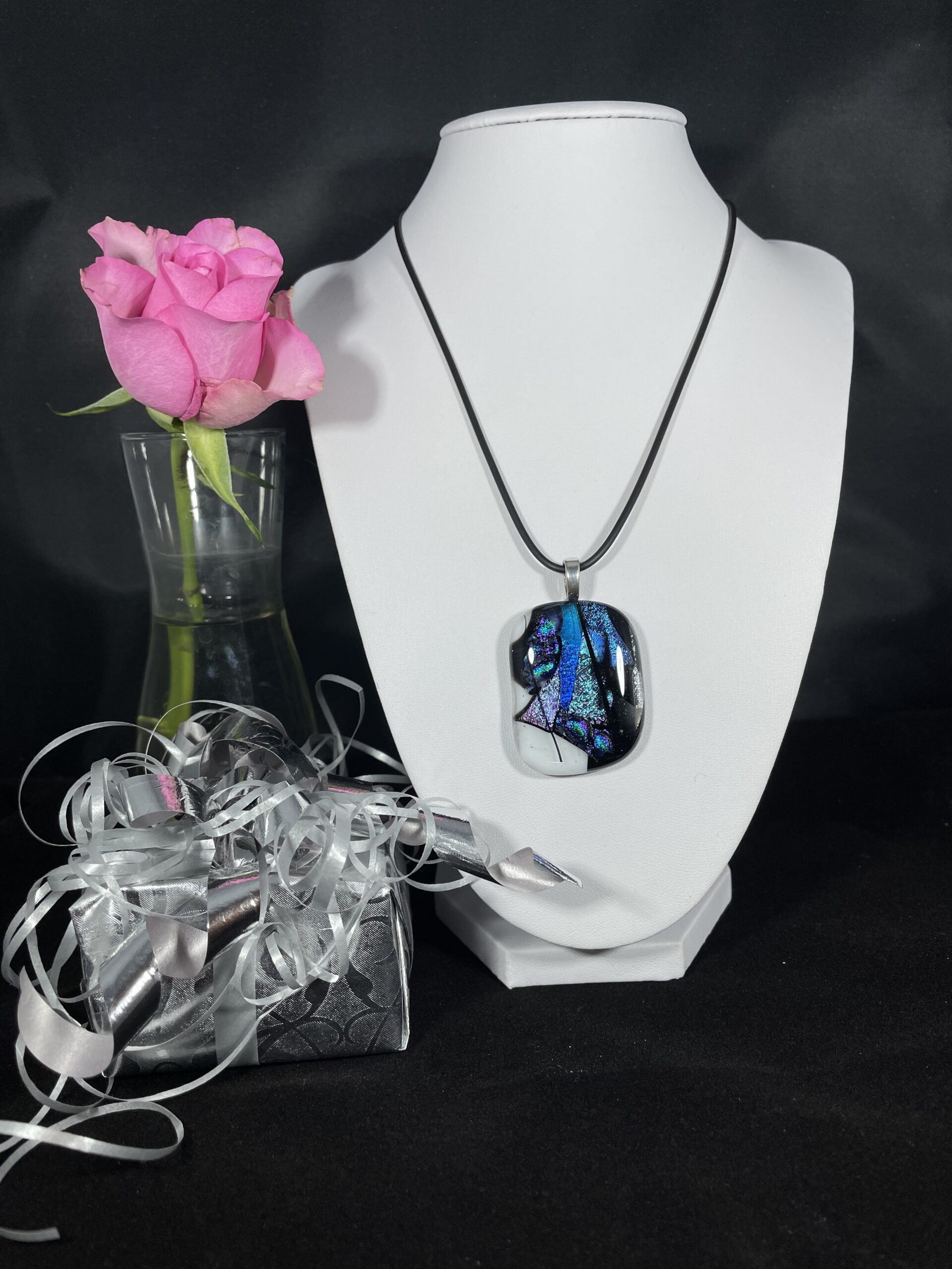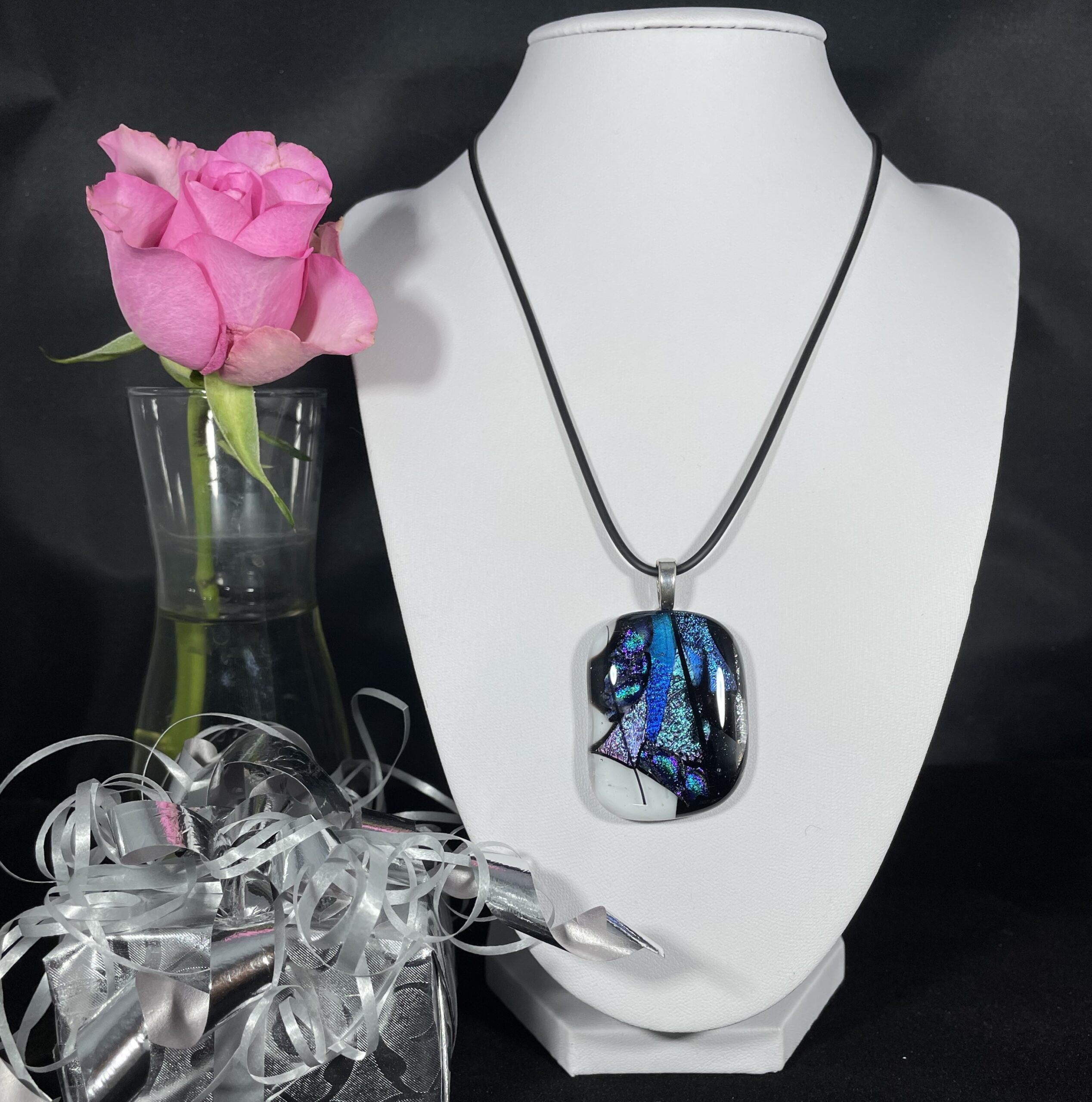 Ett underbart halsband med en vacker blågnistrande glassten