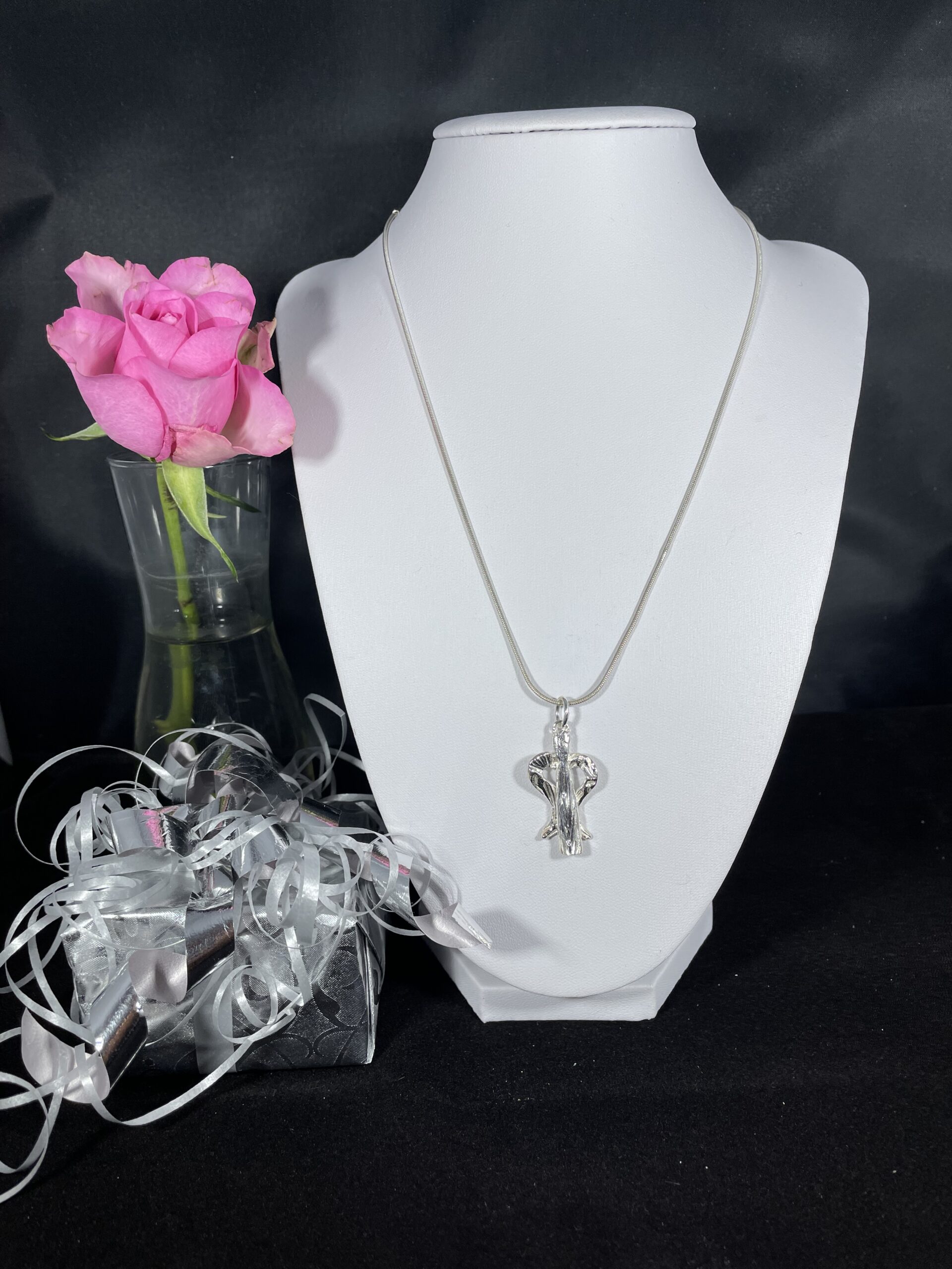Hänget säljs tillsammans med en silverkedja, 42 cm + 5 cm förlängningskedja för att kunna justera längden vid olika urringningar.