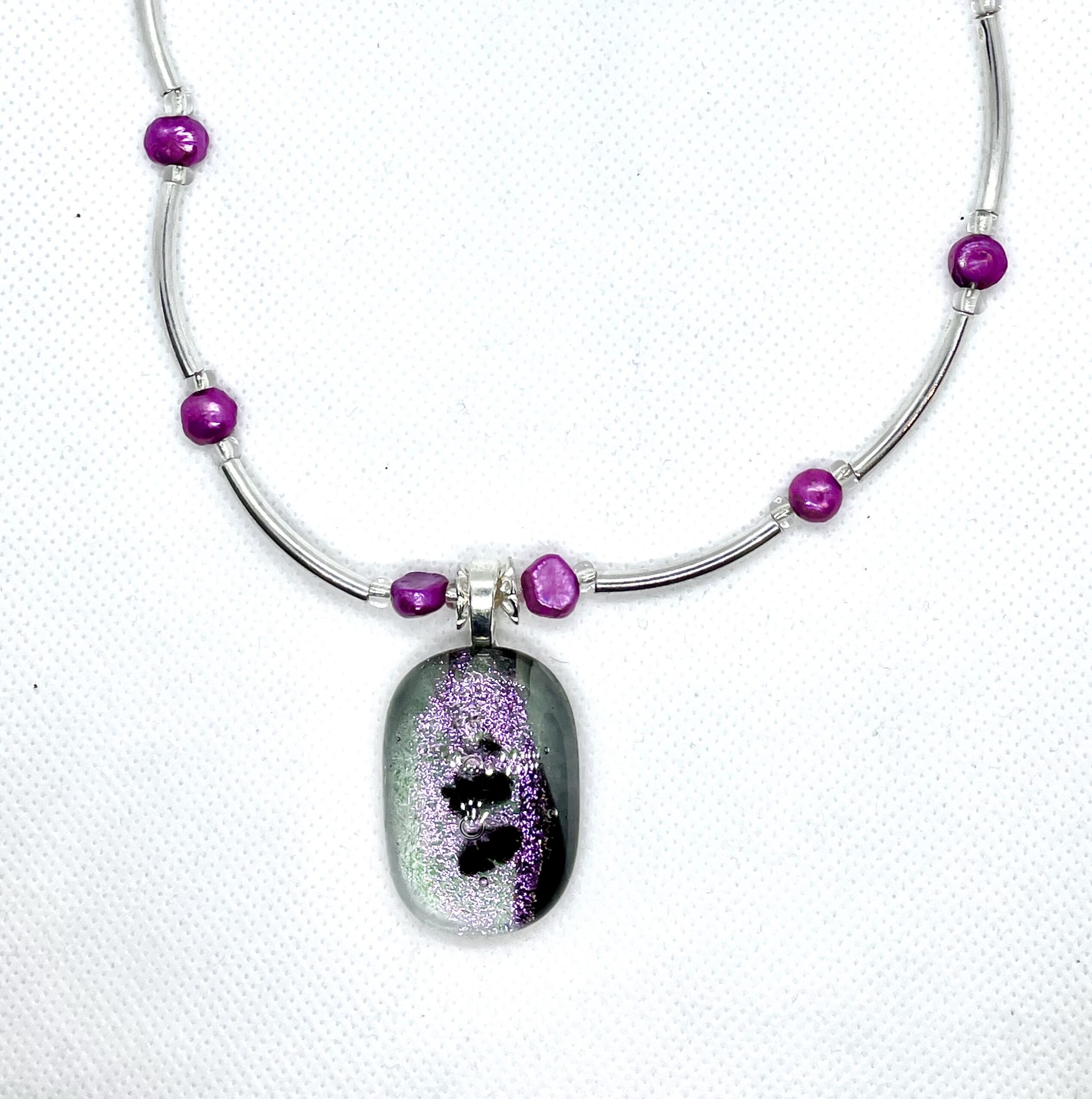 Vackert silverhalsband (SS925) med en underbar rosagnistrande glassten