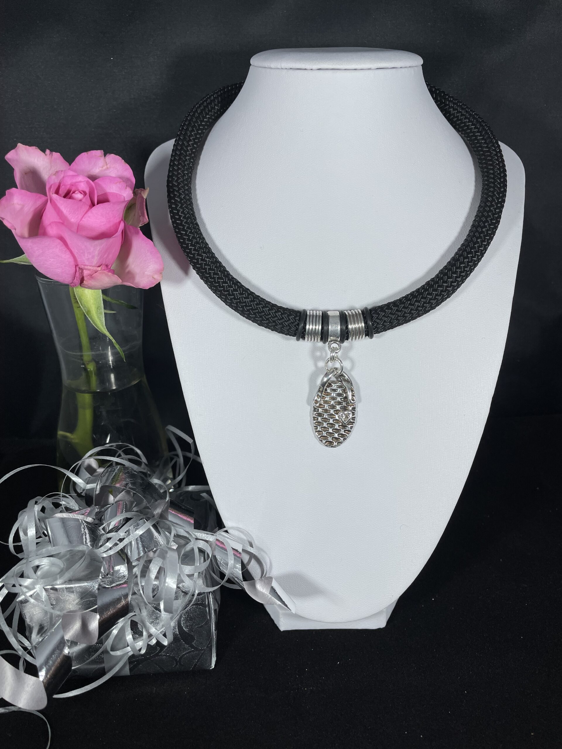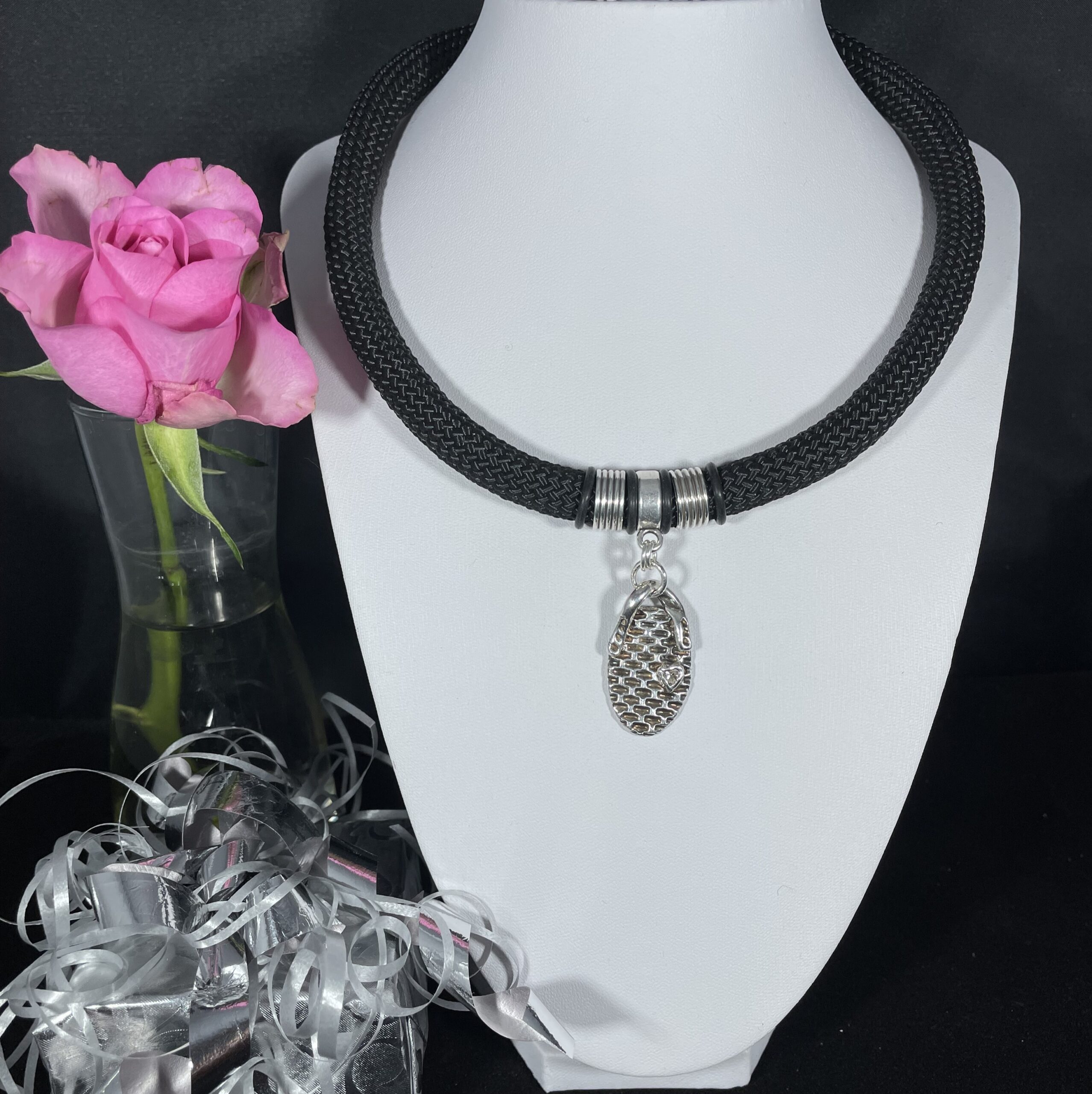 Vackert större halsband med romantiskt silverhänge
