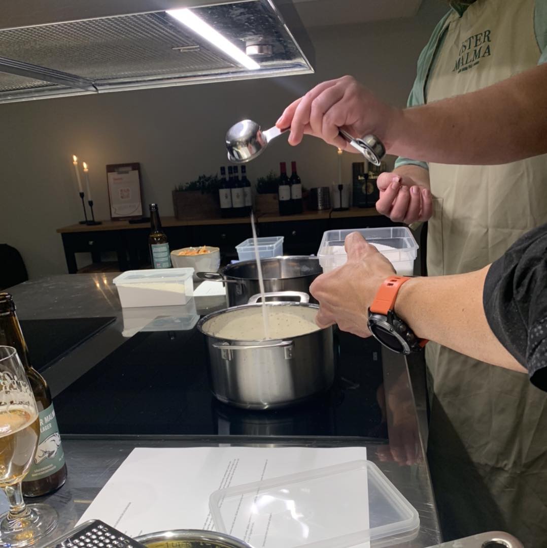 Aktiviteten börjar i köket med genomgång av kvällens arrangemang. Gruppen delas sedan in lagvis och alla lag tilldelas uppgifter inför tillagning och uppdukning av middagen. Därefter hackas, mixas och steks det för fullt i köket. Varje grupp presenterar sina rätter och briljerar med de nya kunskaperna. Matlagningen kommer genomföras i vår Matlagnings studio, där även hotellet och vår relax ligger.
